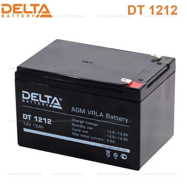 Герметизированный VRLA cвинцово-кислотный аккумулятор Delta DT 1212 напряжением 12В и емкостью 12Ач изготовлен по технологии AGM (с микропористым заполнителем, пропитанным электролитом). Корпус изготовлен из негорючего ABS пластика. Срок службы аккумулятора рассчитан на 3-5 лет работы. Аккумулятор предназначен для работы в режиме постоянного подзаряда (т.н. буферный режим), обладает низким внутренним сопротивлением и саморазрядом.